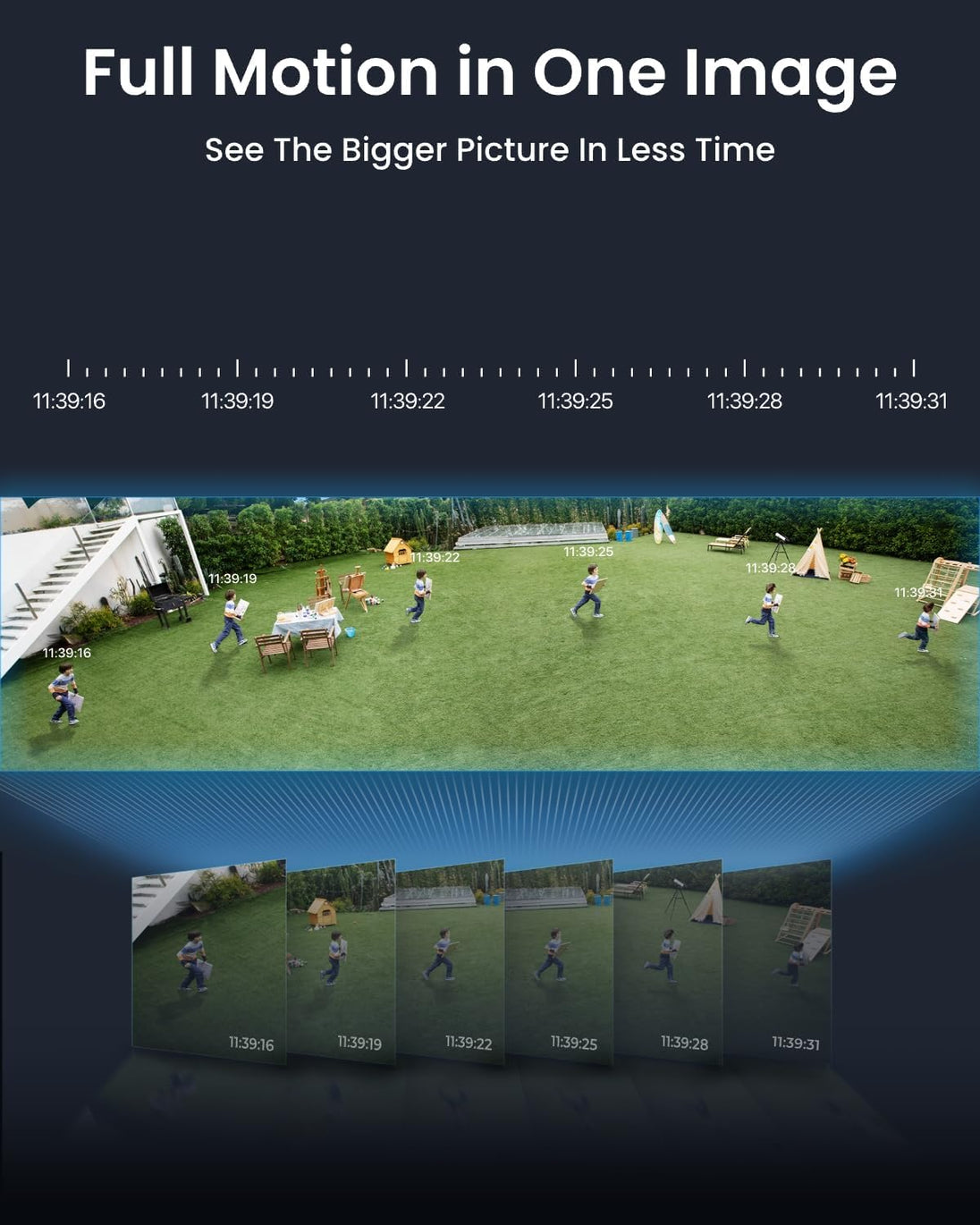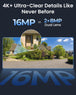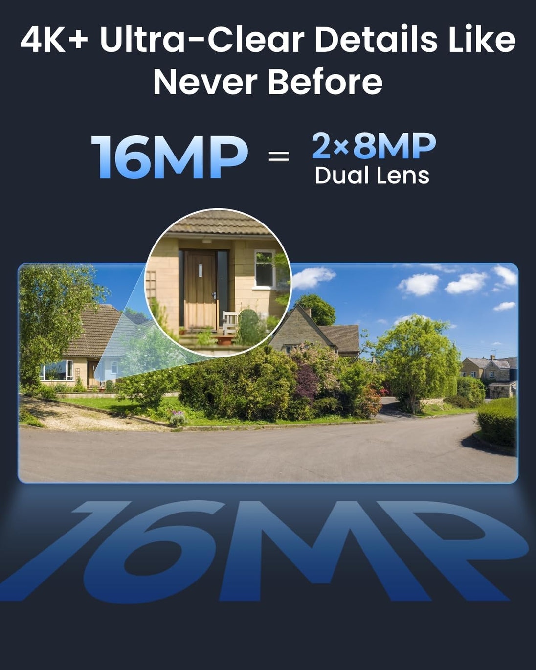 - 16MP UHD & COLOR NIGHT VISION: Featuring two 4K image sensors, this dual-lens camera brings 16 UHD clarity to you, ensuring no small detail goes unnoticed. The F1.6 super aperture and 1/2.7'' CMOS sensor enable greater light intake, while 8x infrared LED lights unveil all night details up to 100ft.