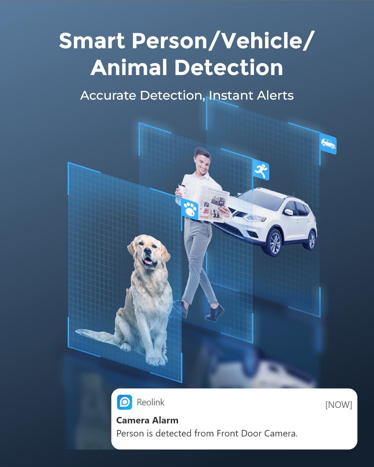 - Smart Detection, No Extra Fees - Cameras in this set intelligently recognize people/vehicles/animals, sending immediate alert notifications to your devices and significantly minimizing false alarms. This feature comes to you at no extra cost.