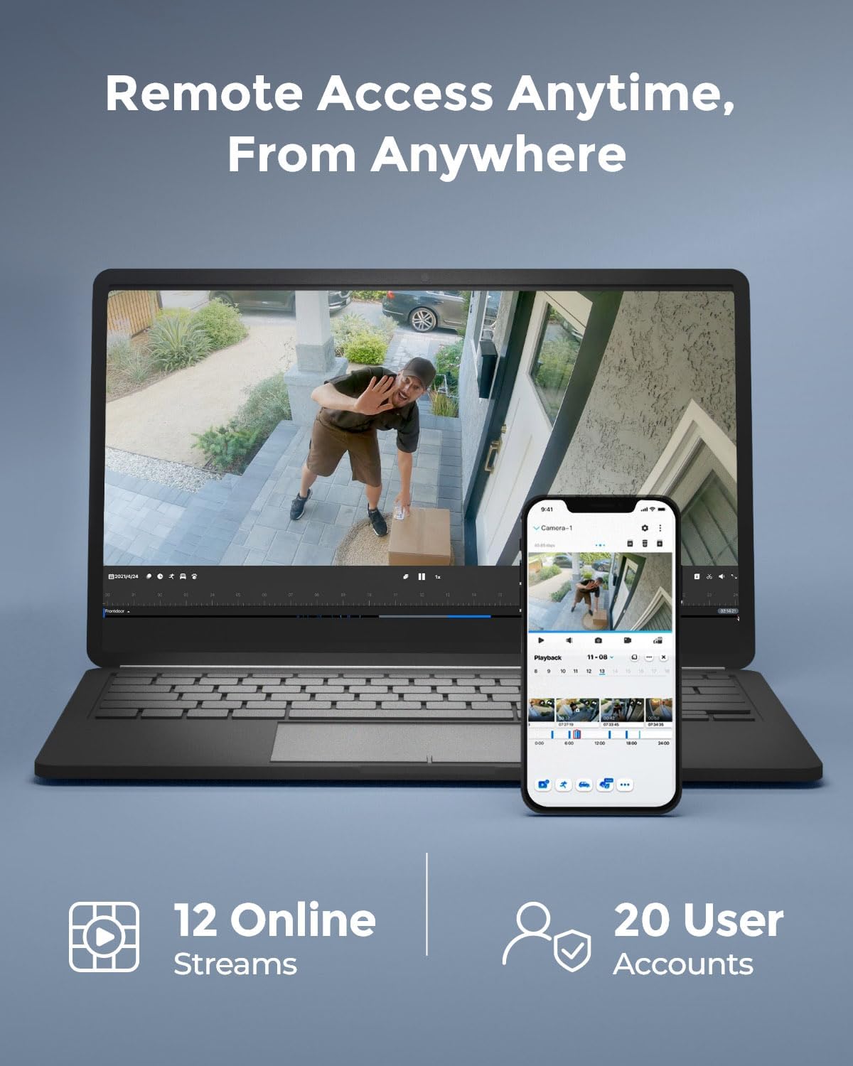 - Your System, Your Choice - NVS12-5MB4W can be expanded with up to 12 Reolink IP cameras — plug-in WiFi or PoE — to cover every corner of your home, store, or factory. Now enjoy the fun of DIY-ing your own security system.
