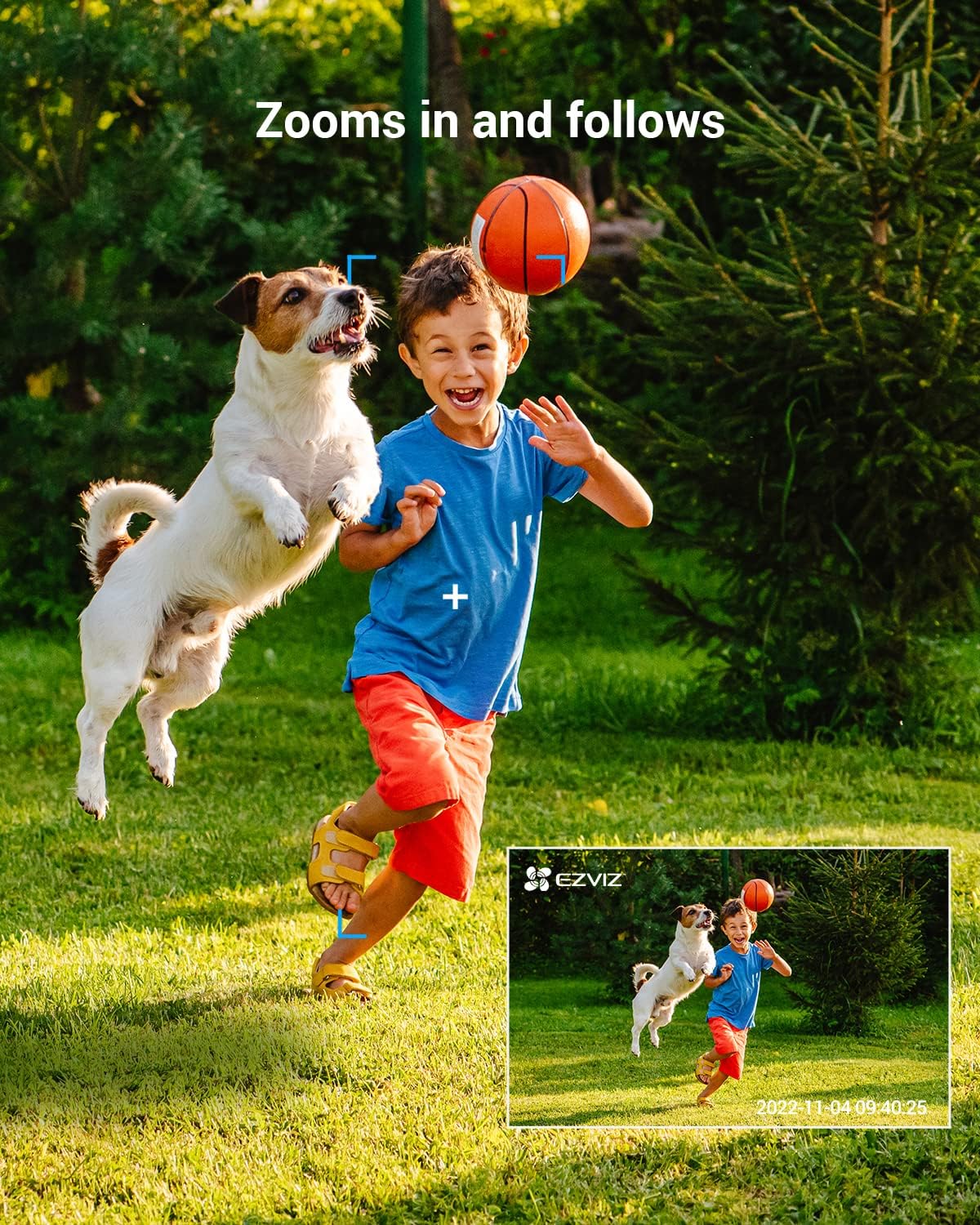 - Un œil intelligent qui verrouille, zoome et suit - Le H8c 2K⁺ distingue les personnes des animaux domestiques ou des objets en mouvement insignifiants. Lorsqu'un mouvement humain est détecté, la caméra pivote automatiquement pour suivre son mouvement et zoome pour enregistrer l'activité.