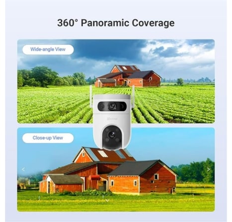 - Dual lenses, Double security - With EZVIZ’s unique dual-lens technology, the H9c provides unparalleled protection that’s beyond professional. It uses a wide-angle lens on top of a telephoto pan-and-tilt lens – the duo works independently or together in a way that is much smarter than your ordinary camera.