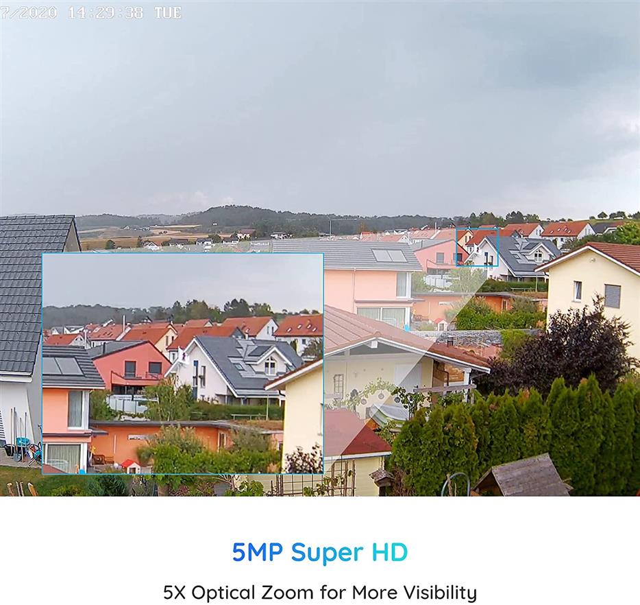 - 5X Optical Zoom for More Visibility - Its motorized varifocal lens provides a wide viewing angle, and its 5X optical zoom allows you to zoom in for astonishing details or zoom out for maximum coverage.
