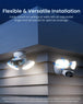 - 【Powerful 3000-Lumen Dimmable Lighting】 Illuminate up to 12 meters with ultra-bright 3000-lumen floodlights, enhancing visibility and deterring intruders. Customize brightness and switch between 3000K warm light for ambiance or 6000K cool light for high-security illumination—perfectly blending with your outdoor lighting.